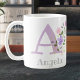 Delightful pastel coloured floral design with monogram and name of the recipient. Initial is the letter A.