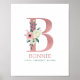 Monogram Letter B Pink Watercolor Floral Nursery Poster