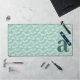 Monogram Letter Initial Teal Blue Floral Pattern Desk Mat