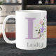 Delightful pastel coloured floral design with monogram and name of the recipient. Initial is the letter L. Lesley gift a gift for Lesley.