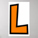 Simple block monogram capital letter L in orange and black. Customise and choose your own background colour. Image available on various gifts and products.