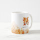 Elegant watercolor leaves frame the bottom of this mug while the letter M is a collage of festive fall element of red orange and yellow leaves, Personalise with a name to make it uniquely yours.