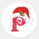 Monogram letter P with Santa hat and holly Christmas Sticker