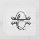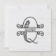 Black monogram letter "Q" with the family name on a whitewashed wood textured background.