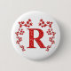 Monogram Letter R Red Leaves 6 Cm Round Badge