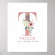 Monogram Letter T Pink Watercolor Floral Nursery Poster