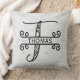 Black monogram letter "T" with the family name on a birch tree textured background.