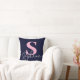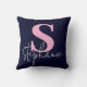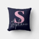 Monogram Lettered Script Navy Blue and Pink Throw Pillow. Stylishly personalise with your monogram initial.
