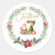 This charming Christmas sticker features a delightful illustration of Santa Claus with an initial alphabet within a Christmas wreath, capturing the essence of the holiday season. The design showcases Santa in his iconic red suit, complete with a fluffy white beard and warm smile, surrounded by festive elements. Adorned with a festive Christmas label, this sticker serves as the perfect greeting for friends and family.