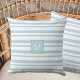 Personalise this Chic Light Blue Striped Throw Pillow with your Monogram and add a Stylish touch to any living space. This pillow is also the perfect Beach House accessory, an elegant accent piece which effortlessly embodies the essence of Coastal living, infusing your Ocean Home with timeless charm and relaxed sophistication. It features soothing Light Blue and Crisp White stripes, reminiscent of the tranquil Ocean Waves. Its Stylish design strikes the perfect balance between classic and contemporary, making it a versatile addition to any Beach House Decor. Also perfect as a Beach Housewarming gift.