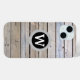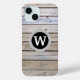 You'll love this wood-look monogram cell phone case with a modern trendy look! White monogram letter in black and grey circles and a background of wood slats.