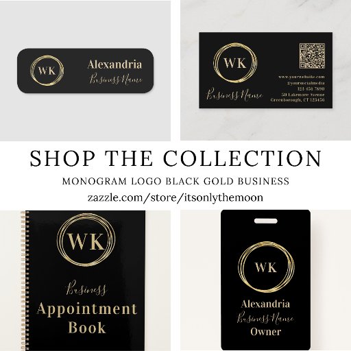 This is a modern, logo and two initials, monogram, Business design. This stylish design, is in black with gold coloured typography / text. There are gold circles around the monogram letters. You can use this as your own logo or add your own. (If adding your own logo, simply delete the initials.) To peronalize you can add your own logo or add your initials by using the personalise this text box. To customise further, check out the design editing tool, where you have the option of changing the colour or font. If you need help with personalisation, or for a custom design, contact me via zazzle chat or email: ursuladawnmoon@gmail.com