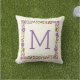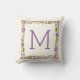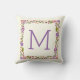 Outstanding floral border throw or toss pillow with beautiful flowers in purple and orange, green leaves and your monogram. Change text with your own.