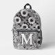 Monogram "M" Floral Tattoo Pattern Black White DIY Printed Backpack