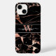 Personalised Black and Rose Gold Marble Pattern Case-Mate iPhone 14 Case - Personalised with a monogram and your name in elegant calligraphy script, it exudes sophistication. The swirling marble design in black and rose gold colours adds a touch of glamour. The monogram showcases your unique identity, while your name in calligraphy script adds a personalised touch.