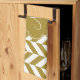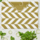 Monogrammed metallic gold and white herringbone pattern kitchen towel. The design features a gold and white herringbone pattern and a quatrefoil shape in the middle with your custom initial.