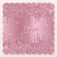Monogram Metallic Pink Dripping Glitter Girly Paper Coaster.
