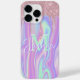 Dripping pink faux metallic rose gold glitter melting icing drips over a rainbow iridescent simulated holographic gradient swirl in beautiful girly tones of teal, purple, blue and pink. the overlay sparkles and glimmers as it melts down the front like an organic paint drip. This graphic is gorgeous, chic, beautiful, feminine, sophisticated and unique, the perfect gift for any glitter loving girl. simply personalise & customise by quickly adding your name and initial to the pre-made monogram, and youre set. instant glam if ur in a jam.