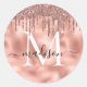 Monogram Metallic Rose Gold Pink Glitter Drips Classic Round Sticker