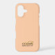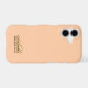 Personalized monogrammed stylish modern refined iPhone case, customizable personalizable with monogram, initial letters and name. Feminine chic premium look, pastel orange, soft peach background, elegant gold calligraphy script handwritten initial letters, and classy black typography for the name. Beautiful and timeless, for you to protect your cellphone, or as a thoughtful custom fashionable useful electronic tech gift idea. Also it is very affordable, a gift under 50 dollars for her. Even under 35 dollars. Appropriate to be used for the personal cellphone or as a professional business phone accessory case.
