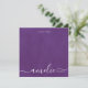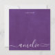 This modern note card "a note from", features your first name in a white handwritten script calligraphy on a violet distressed background, with your last name in a modern sans serif typography nested within your script type. The back of the notecard is white for your message. Textured effect.