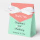 Monogrammed mint green and coral pink colour block thank you wedding favour box. The design features a mint green and coral pink colour block trendy design and your custom text in black and white fonts. You can personalise your monograms, bride's and groom's name and the date.