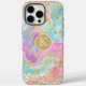 Monogram Modern Abstract Glitter Personalised iPhone 16 Pro Max Case Phone Case features a colourful abstract liquid art background in pink, purple, red and blue with a pattern of gold flowers and accented with faux gold glitter and personalised with your custom monogram in the centre. Perfect gift for her for Christmas, birthday, Mother's Day and more whether girlfriend, sister, mother, friends. Created by Evco Studio www.zazzle.com/store/evcostudio