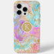 Monogram Modern Abstract Glitter Personalised iPhone 15 Pro Max Case Phone Case features a colourful abstract liquid art background in pink, purple, red and blue with a pattern of gold flowers and accented with faux gold glitter and personalised with your custom monogram in the centre. Perfect gift for her for Christmas, birthday, Mother's Day and more whether girlfriend, sister, mother, friends. Created by Evco Studio www.zazzle.com/store/evcostudio