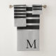 Monogram Modern Black Stripes on Silver Bath Towel Set