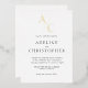 The glimmering gold monogram sets the opulent, sophisticated and yet simple tone of your celebration to come. The gilded initials are resplendent  on these extremely elegant wedding invitations. The minimalist form continues with the black and white text throughout the invitations. The foil of the will shimmer and shine, adding a touch of glamour to the otherwise understated cards. Matching RSVP and enclosure cards available, see the collection below.