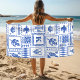 Monogram Modern Blue White Abstract Pattern Beach Towel