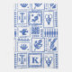 Monogram Modern Blue White Abstract Pattern Tea Towel