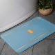 Trendy luxury exclusive looking monogrammed bathroom bath mat featuring a faux gold copper metallic glitter square and stripes over a stylish classy blue background. Personalise it with name and monogram initial. It can be an elegant personalised personal or family gift for a birthday, housewarming, retirement, holiday, anniversary, or any other occasion.