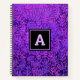 A purple, pink and blue ombre leaf foliage damask pattern on a rich, deep purple textured background adorns this modern, trendy and girly monogramed custom spiral notebook. Makes a chic and stylish statement every time you use it. A great gift for a friend, as well as yourself!