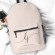 Monogram Modern Minimal Blush Pink Script Initials Printed Backpack