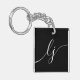 Monogram Modern Minimal Elegant Black White Script Key Ring