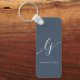 Monogram Modern Minimal Elegant Navy Blue keychain White Script Calligraphy Initials Keychain