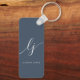 Monogram Modern Minimal Elegant Navy Blue Script Key Ring