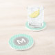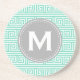 Monogram Modern Mint Greek Key Pattern Coaster