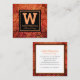 Monogram modern orange gold foliage leaves pattern square business card