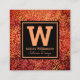 A sparkly gold and copper foil ombre autumn leaf damask pattern on a rich burnt orange and deep red textured background adorns this stunning, modern, trendy custom square business card. Personalise with your initial, full name, and business on the front. Fill in the back side with your phone numbers, address, email, website, and social media accounts. Makes a chic, smart, and stylish statement wherever you go.
