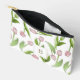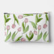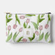 The product design features a pattern of pink tulip flowers. This botanical illustration with personalised monogram makes a modern chic and unique accessory pouch.