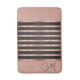 Elegant pink shimmery stripes on black creating a modern touch. Can be customised with a letter or name on the bottom.