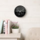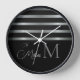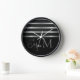 Monogram Modern Silver Stripes Family Name Clock