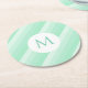 Monogram Modern Template Mint Green Stripes Trendy Round Paper Coaster.