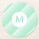 Monogram Modern Template Mint Green Stripes Trendy Round Paper Coaster