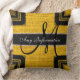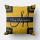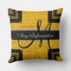 Monogram Modern Yellow & Black Burlap Rustic Jute Cushion