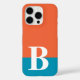 Monogram Monogrammed Simple Modern Orange Blue Phone 16 Pro Case features your custom personalised initial on an orange and blue colorblock background. Personalise by editing the text in the text box provided. Font and font colour can be changed by personalising. Perfect as a gift for him or her for birthday, Christmas, Father's Day, Mother's Day, holidays and more. Created by Evco Studio www.zazzle.com/store/evcostudio
