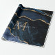 Monogram Name Agate Navy Blue Gold Marble Gift Wrapping Paper