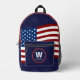 Monogram Name American Flag Map Custom Printed Backpack